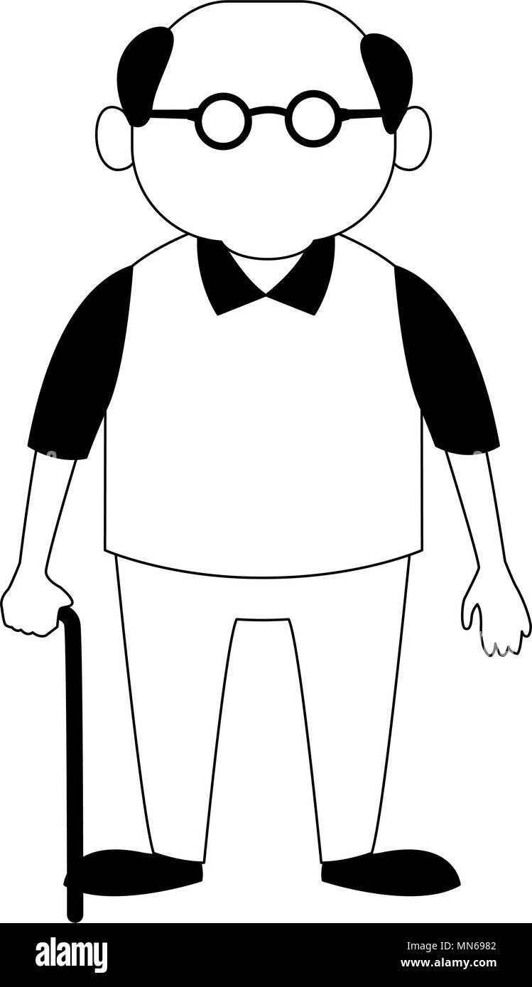 Cute Grandfather Cartoon On Black And White Colors Stock Vector Image Art Alamy